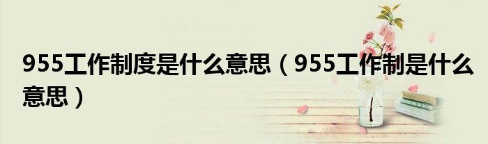 您好,今日小编就为大家解答这个问题。955工作制度是什么意思,955工作制是什么意思相信很多小伙伴还不知道,现在让我们一起来看看吧!