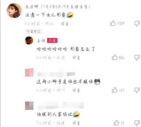 姜潮发了动态后还和评论区的粉丝亲切互动,有的粉丝调侃姜潮:“哥哥妹妹都像妈妈,爸爸重在参与”,确实,宝贝们都继承了麦迪娜的美貌,麦迪娜还在视频下提醒姜潮要注意孩子形象,姜潮不以为然还反问:“形象怎么了”,可能爸爸带孩子就是这样,只要健康就好,不在意形象管理,哈哈哈哈。还有个粉丝说妹妹的样子简直就是丹尼尔,姜潮回复说:“妹妹比丹尼尔小时候好看多了”,姜潮就是妥妥的女儿奴啊。