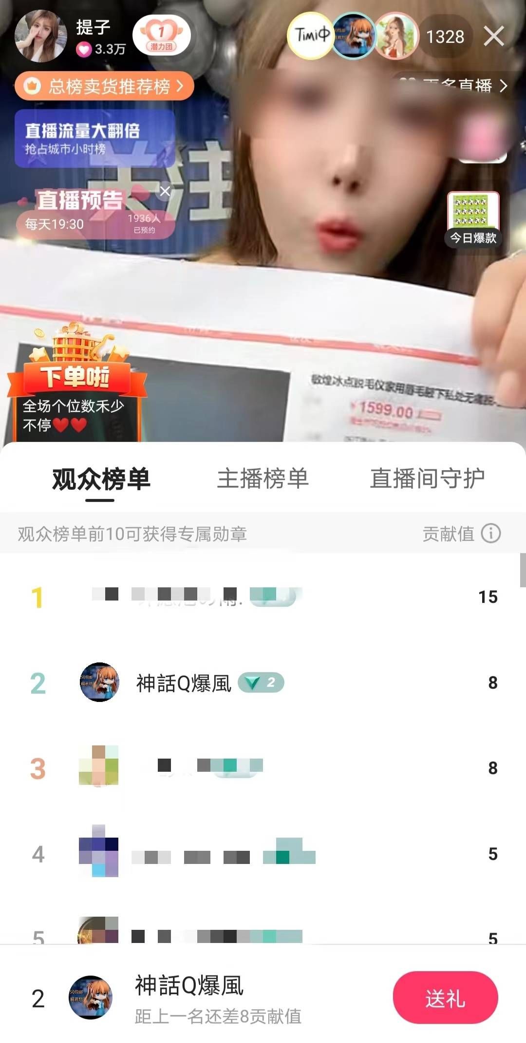 “我们先试探性在评论区表示想要购买鲨鱼。但发现主播只回应最顶端两条评论,疑似当时的榜一、榜二。”“直播开始后,我们跟风在直播间留言刷屏。由于‘提子’一直售卖粉丝团不想要的商品,最开始的榜前十陆续离开直播间,我花了不到一块钱就冲到榜二,另外一位朋友则冲到榜六。”