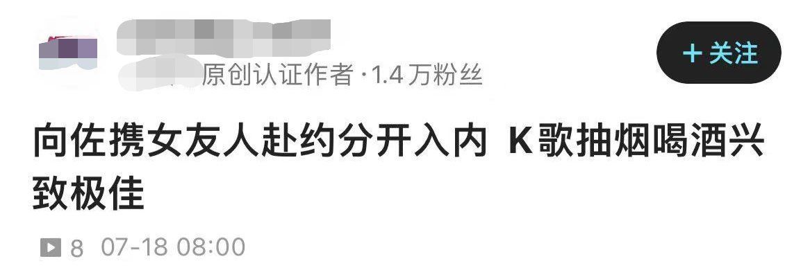 7月18日,知名媒体晒出向佐近况画面,直指他深夜和女性友人一同前往某高端会所游玩,现场男男女女十分热闹。