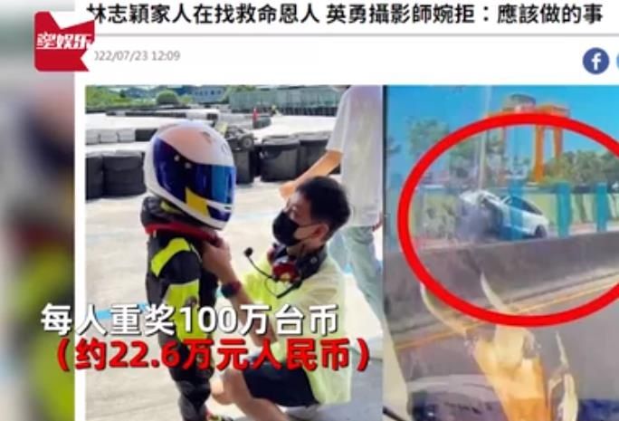 林志颖弟弟林志鑫在发布会上多次强调感激施救者,有报道指林志颖的家人想找见义勇为的路人,每人给予100万台币(约22.6万元人民币)表示感谢,上述救人者婉拒表示:这没什么的,就是应该做的事。