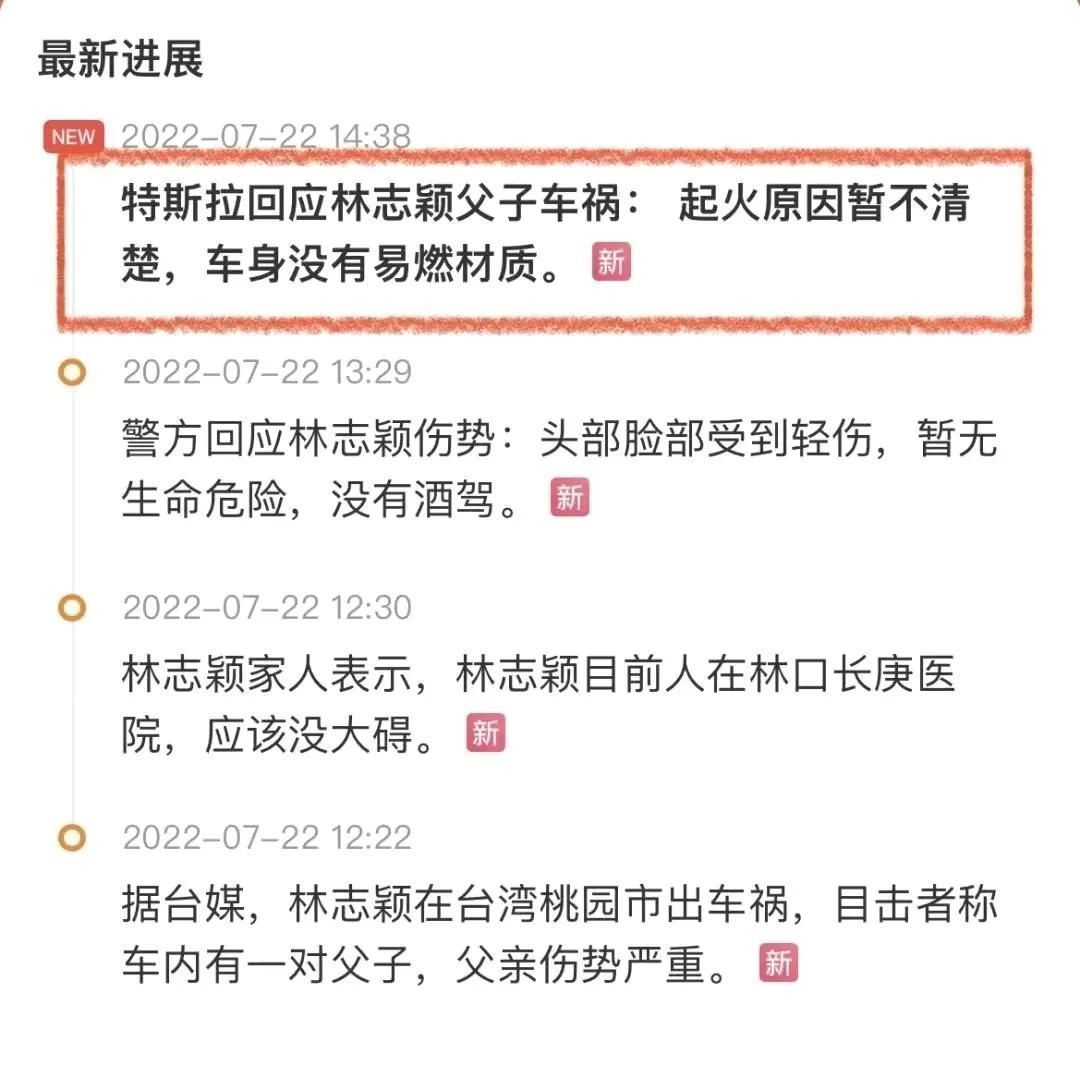 的确,要不是现场热心人不顾自己的安危,时间对林志颖和他的二儿子施以援手的话,从特斯拉后来在现场燃烧的惨烈情况来看,林志颖极有可能会被烧死。