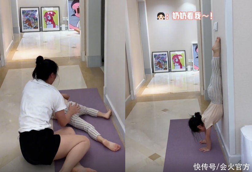 但何姿顾不上自己的疼痛,立马坐下来查看女儿的状况,好在母女俩都没什么事。不一会儿,小盒子又开始尝试,这种不放弃的精神,想必也是跟自己的运动员父母所学的。这一次小盒子终于没有失败了,来了个漂亮的倒立,她还大声地叫奶奶看她,想要炫耀一下自己的成功。