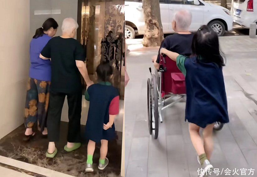 在何姿夫妻俩的教育之下,小盒子确实成长得乖巧懂事。走路时,小盒子会牵着长辈。还会主动帮长辈推轮椅,即使小小的身体还没有太大的力量,但她也一声不吭,做得十分卖力。