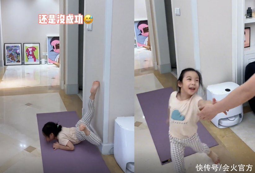 何姿的家中装修十分精致,靠墙摆着的三幅画格外抢镜。比豪宅更吸引人的是小盒子倒立的结果,不知道是不是力量不够,小盒子屡次失败,摔倒在地,把镜头后的爸爸秦凯心疼坏了。一直不成功的小盒子便让妈妈做示范,撒娇的样子十分可爱。