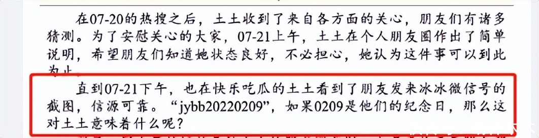 土土称发文的背景王冰冰的微信号0209日期,看到这个产生了疑惑,这离她与徐嘉余分手相隔不到两日,他们是2月7日分手,间隔期太近,于是就对三年的感情产生了诸多疑问。