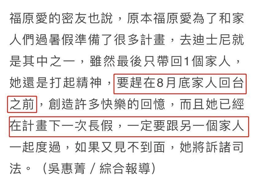随后,福原爱的闺蜜也接受了采访,并透露福原爱要在8月底送回儿子,并且等到孩子下一次放假时,会带着两个孩子一起度过。