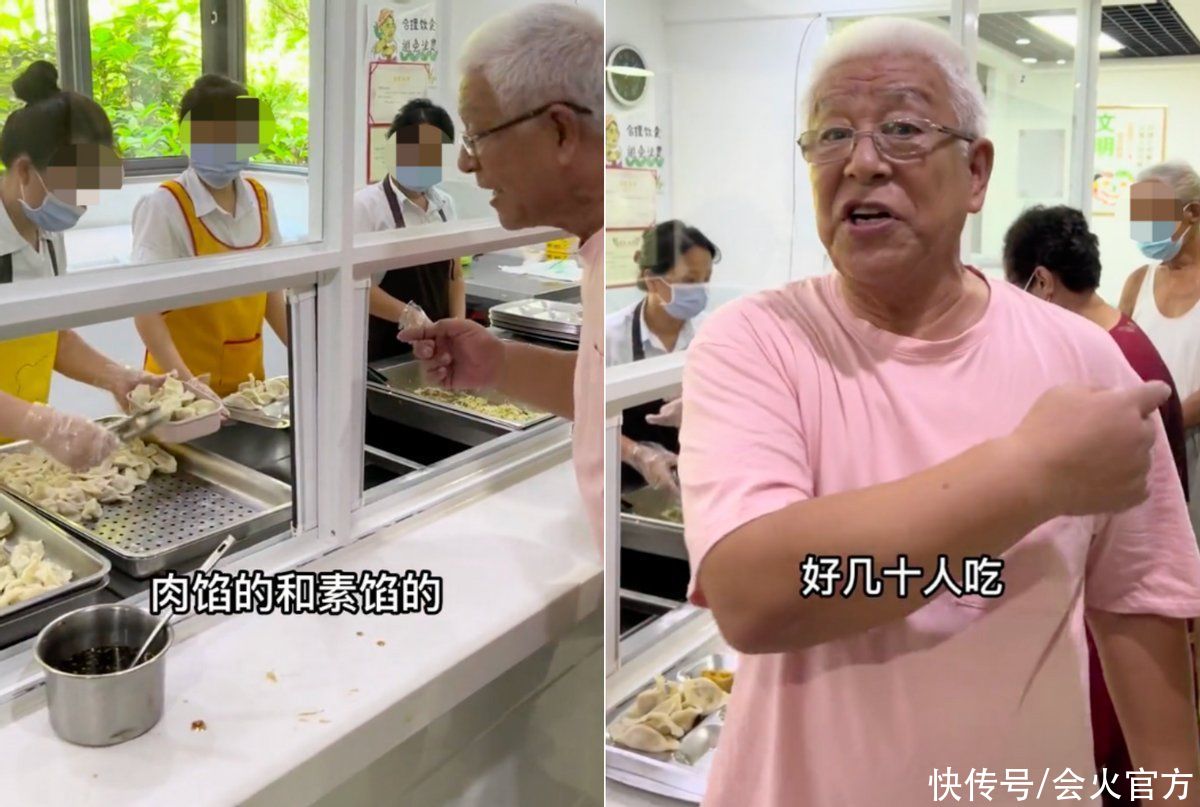 在领饺子之际,张洪杰热情和后厨人员交流,询问饺子都有什么馅,每人是不是限定领取。最后得知荤素都有,而且饺子个个都是后厨人员亲手包的,连连感叹此举非常好,很多老人都在这里吃。