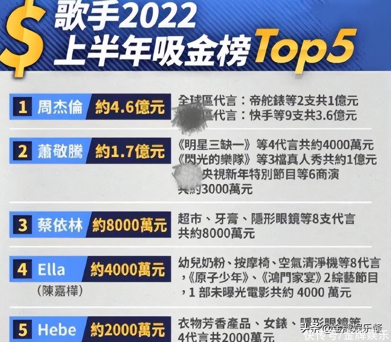 像蔡依林和田馥甄,主要靠的是广告和代言
