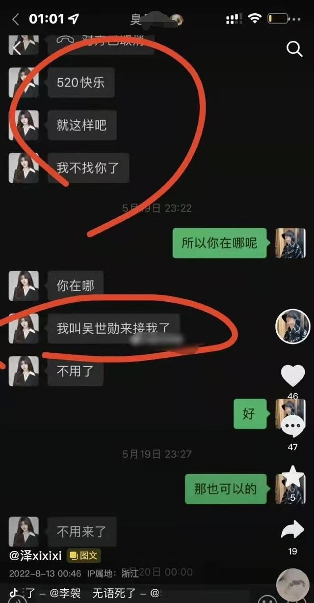 韩安冉还发消息给马泽鑫祝他520快乐,然后转头又告诉他自己有别的男人来接了,马泽鑫爆料图文的配乐是“无语死了”,看来对这段感情他的确是很失望吧。