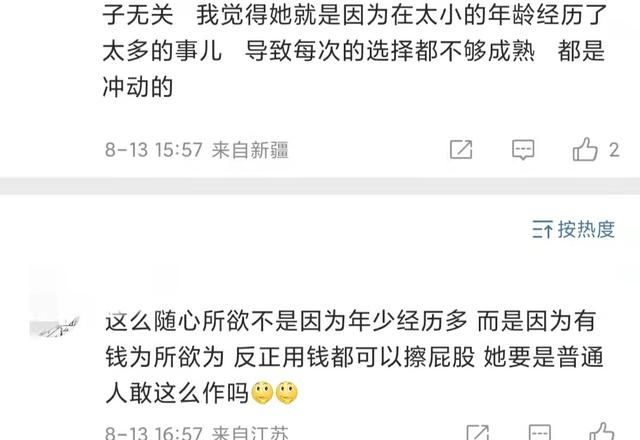 有网友可怜韩安冉,认为她是因为在太小的年龄经历了太多的事,所以导致每次做选择都不够成熟,容易冲动。