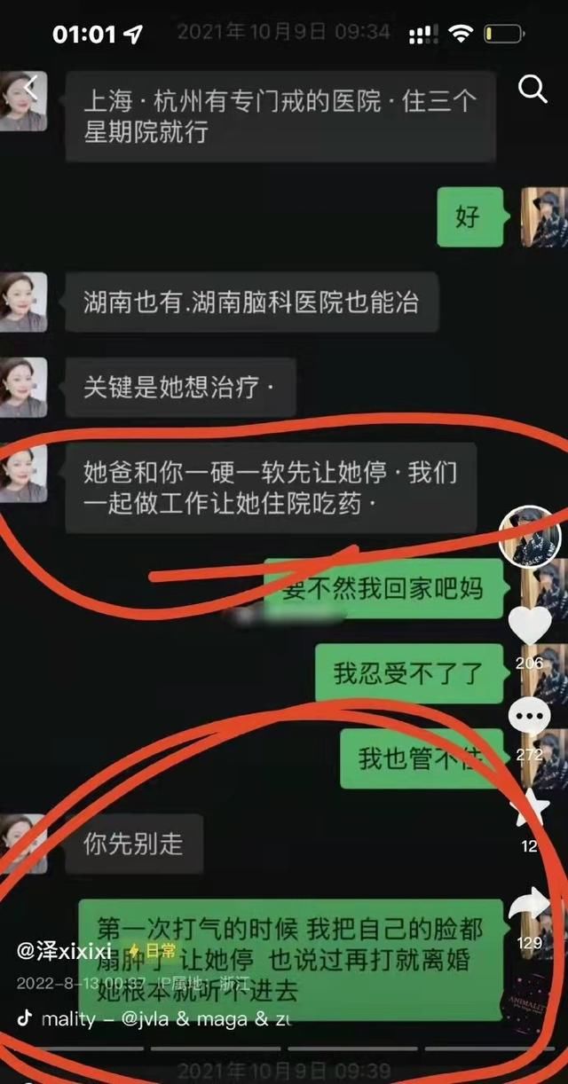 在马泽鑫放出的聊天记录中,韩安冉和友人透露,自己婚内曾和前男友刘允浩(聊天记录里称刘鑫鑫)睡觉,不敢告诉别人,而且因为现任老公马泽鑫对她太好,她舍不得离婚。