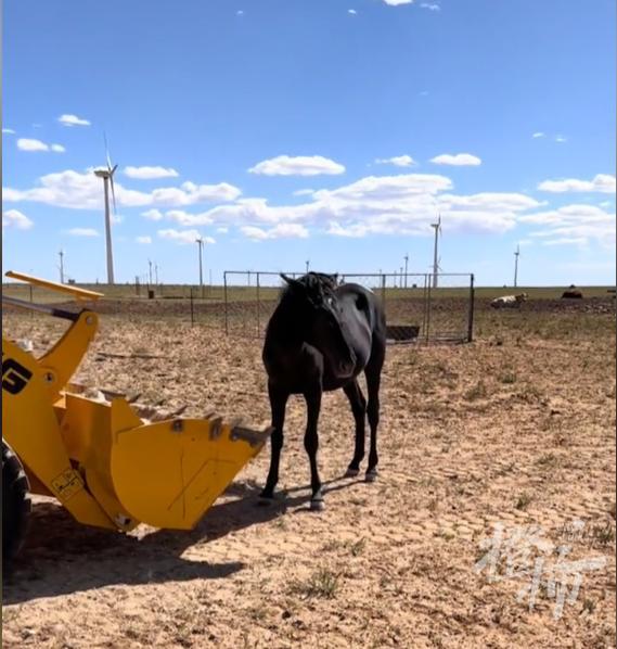 8月30日,内蒙古巴彦淖尔乌拉特中旗,一匹老马去世后,主人用铲车为它送葬,同伴的两匹马依依不舍地挡在车前,久久不肯离去。马主人称,这两匹小马是跟它一起长大的,我家34岁的老马去世后,特别舍不得它走,一直拦着车,我看了心里特别难过……