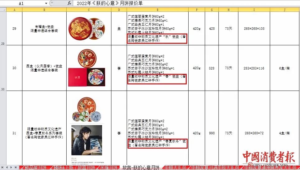 《中国消费者报》通过梳理“汇沣仁和”产品报价表发现,多款月饼售价较贵,平均单个月饼的售价超过50元,有的甚至超过100元。