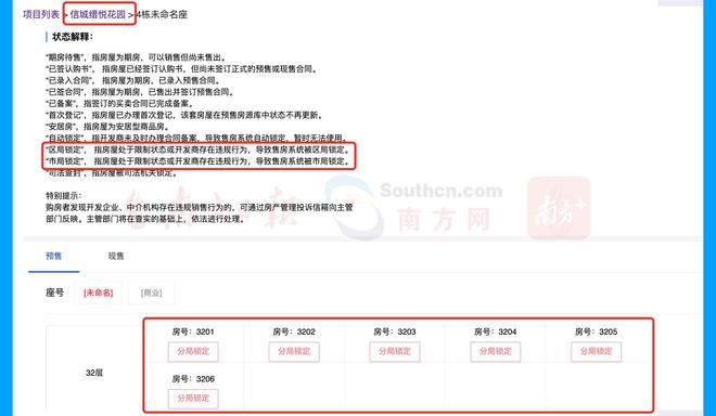据深圳市住建局网站信息显示,信城缙悦城目前1-4栋的“期房待售”房源均显示“分局锁定”,合计644套住宅、48套商业。