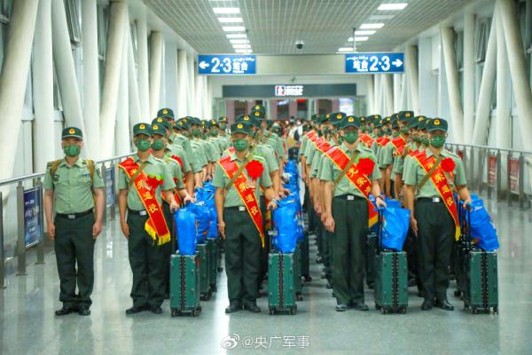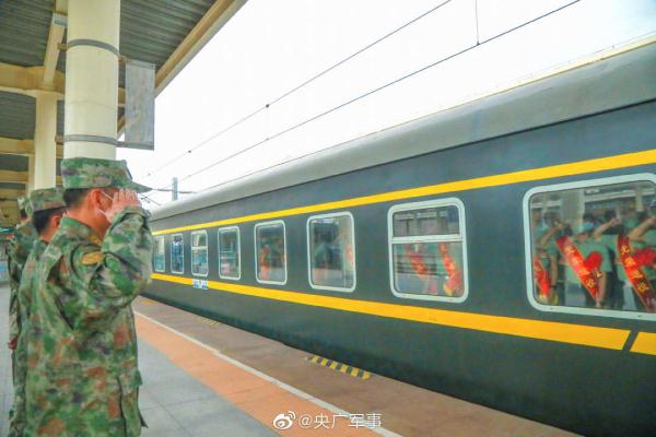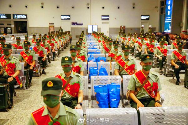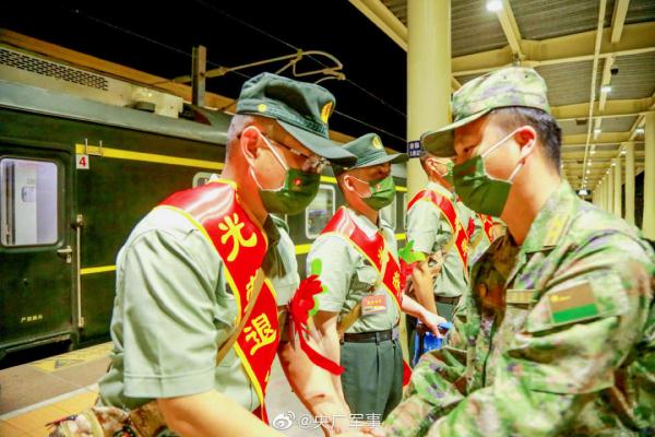 近日,陆军第76集团军“铁拳旅”组织退役士兵返乡。在候车厅,退役士兵整齐列队、胸戴红花,告别朝夕相处的战友。一身戎装,一生荣光!祝福!