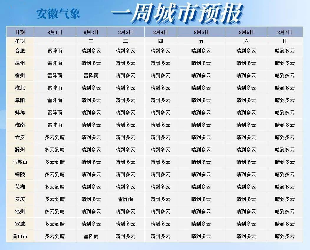 3-7日(周三至周日)全省晴天到多云,大别山区和皖南山区局部地区午后有短时雷阵雨。
