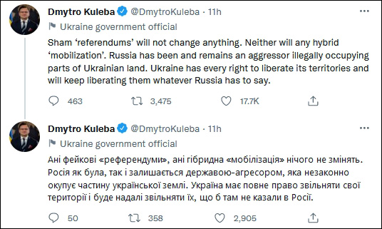 他也在推特上进一步表示,乌克兰“完全有权解放其领土,并将继续解放它们,无论俄罗斯怎么说”。