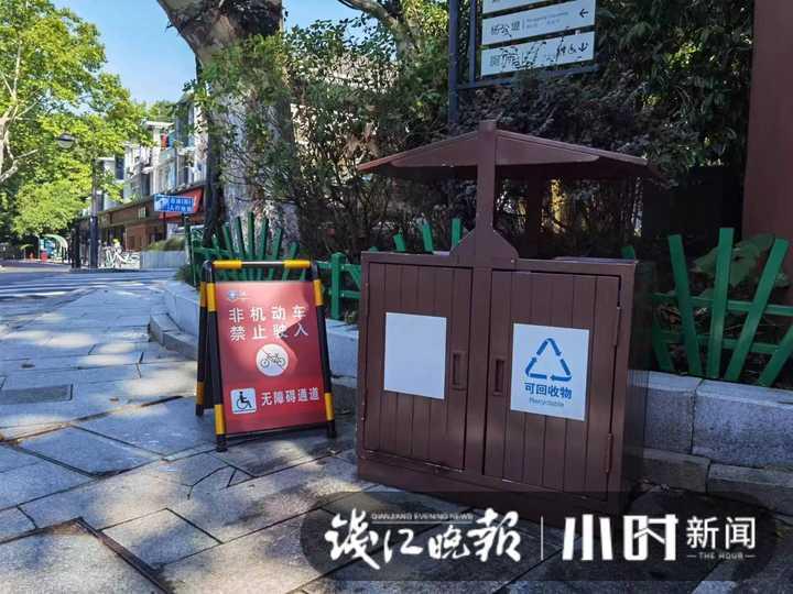 何松华告诉记者,“保洁员除了做常规巡查外,这段时间还需要特别关注果壳箱上的垃圾分类标识贴。今年夏天以来,持续高温,果壳箱上用不干胶粘贴的分类标识容易翘起来。西湖边这么多游客,标识是游客进行分类投放的依据,我们一看到就会重新换上。”