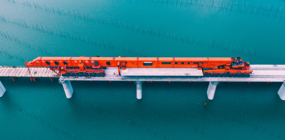 近日,世界首台千吨级架桥一体机“昆仑号”,开始架设世界首座采用1000吨重、40米跨箱梁的跨海高铁桥梁——新建福厦高铁湄洲湾跨海大桥。