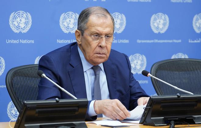 当地时间9月24日,俄外长拉夫罗夫在纽约出席新闻发布会 图自澎湃影像