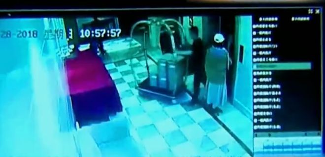 从监控中,众人得知,五粮液酒是大爷婚礼前送到酒店的。