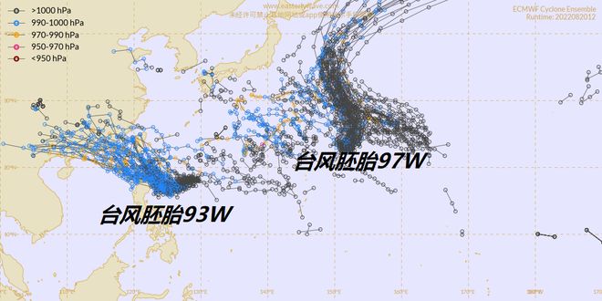 目前,超级计算机的预测中指出,西太平洋上这两个台风胚胎,都有了发展增强的迹象,尤其是菲律宾以东的台风胚胎93W,更是有了相当强烈的发展迹象。它将在副热带高压南侧逐渐西行,有可能进入南海并且有向着华南沿海靠近的趋势。
