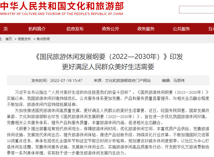 具体包括优化全国年节和法定节假日时间分布格局、规划建设环城市休闲度假带、以社区为中心打造休闲生活圈、完善休闲服务设施、发展新兴休闲业态、实施旅游休闲高品质服务行动、开发数字化文旅消费新场景等一系列具体举措。