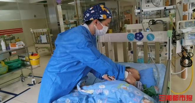 三湘都市报10月13日讯(文/视频 记者 李琪 通讯员 姚家琦 )今天上午,湖南省儿童医院危重病医学一科,各种医疗仪器围绕的病床上,8个月的多多(化名)正在接受治疗。“宝宝是因为败血症在这里救治。”该科室总住院医师宋宇雷,正在检查他的治疗情况。
