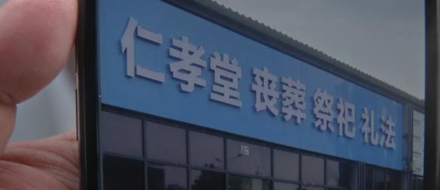 武汉市江夏区建设里居民:“昨天半夜把‘丧葬’两个字拿掉了,这个红布是昨晚12点钟左右遮上去的。”